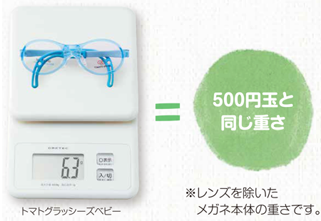 メガネ本体の総重量は非常に軽量で メガネに慣れていないお子様でも 負担になりにくい軽さです。