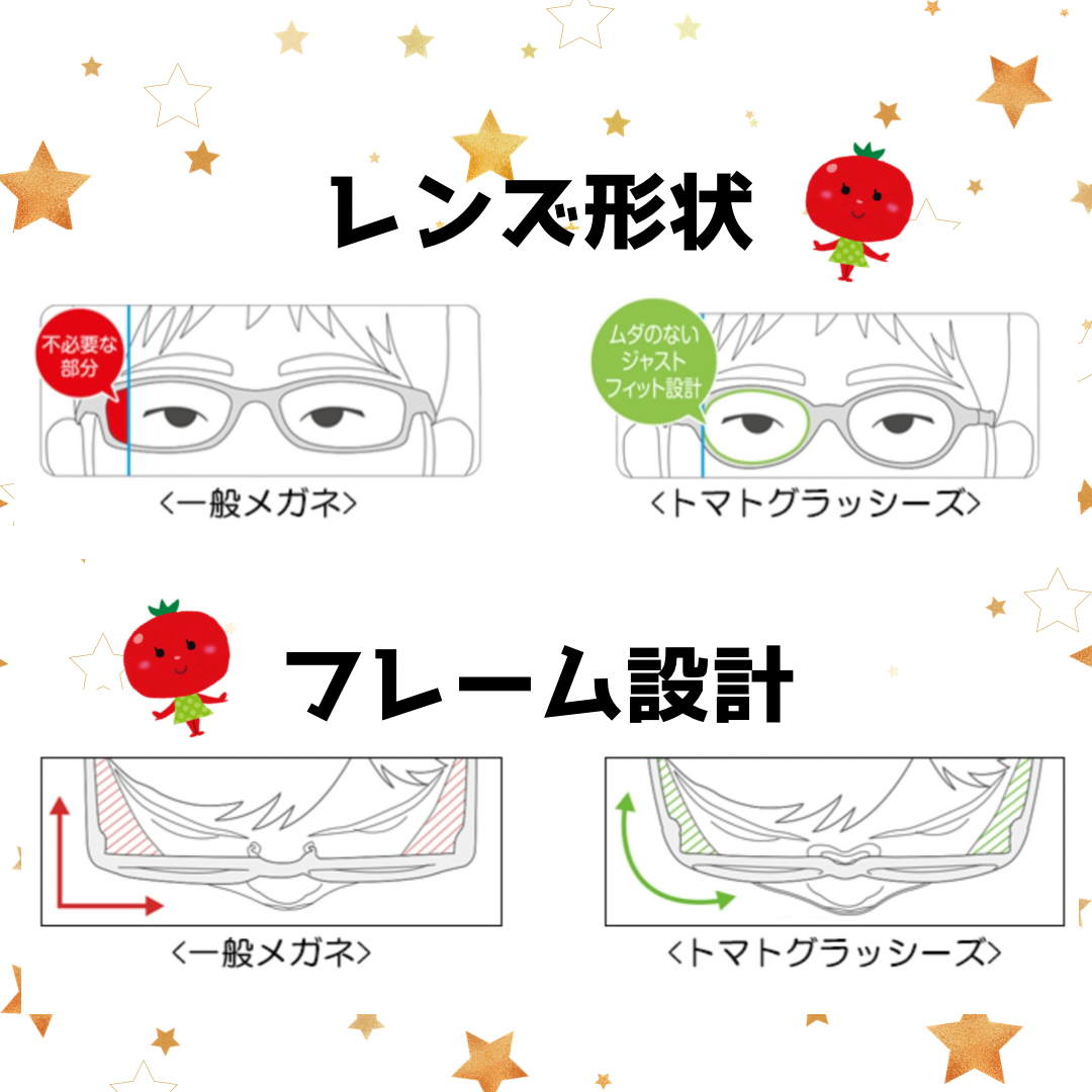 トマトグラッシーズは 細かな調整が出来るので、 お子さんのお顔に合わせることができます。