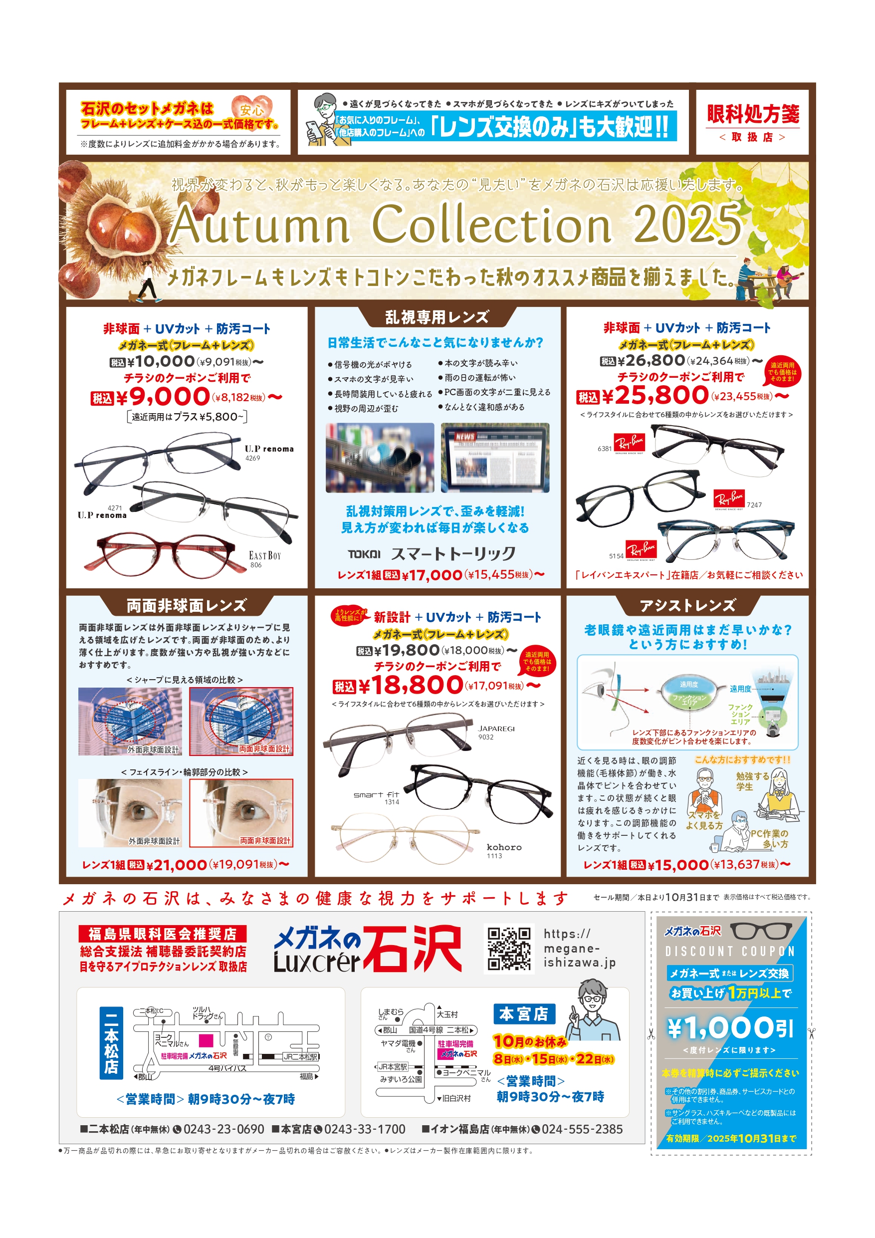メガネの石沢では、「オータムコレクション2025」を開催いたします。