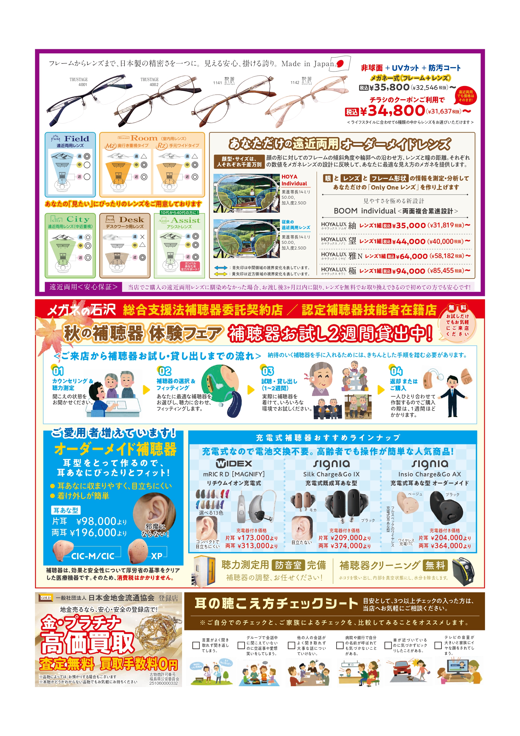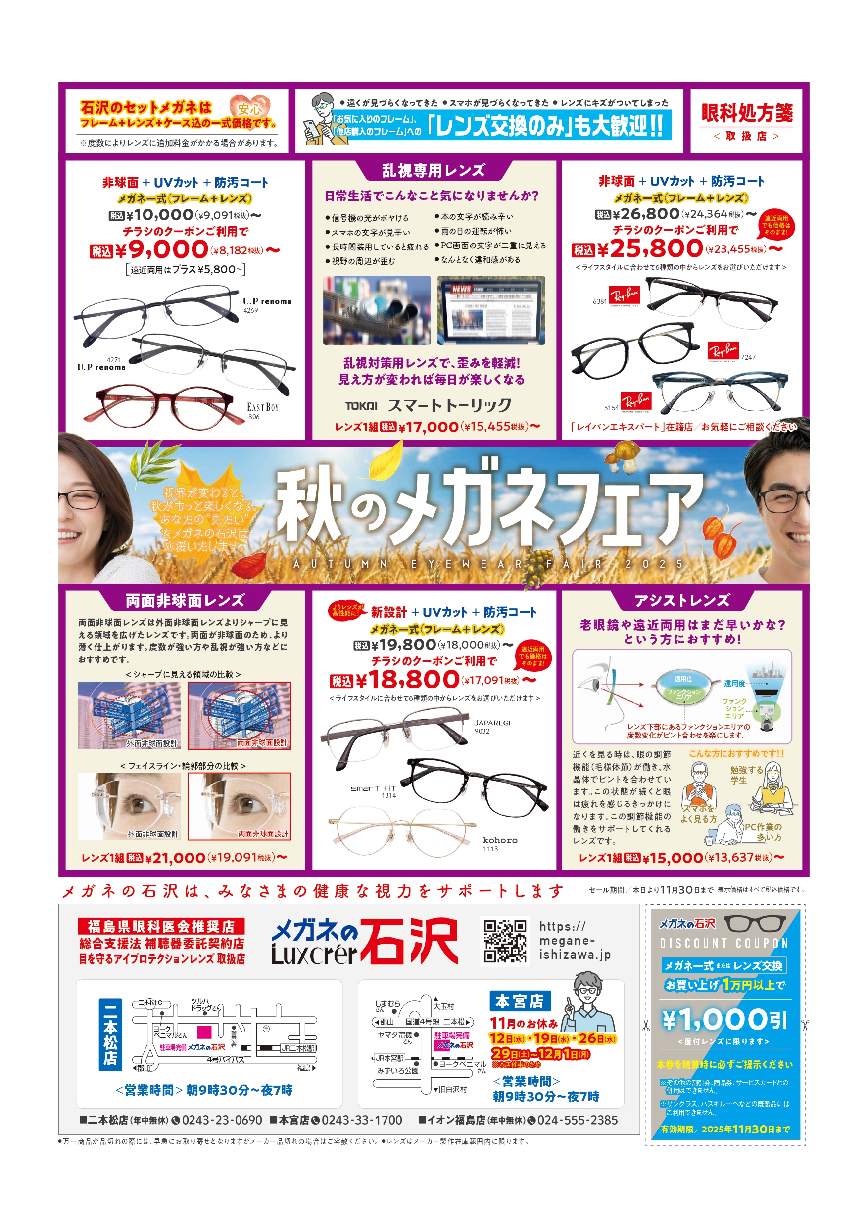メガネの石沢では、「秋のメガネフェア」を開催いたします。