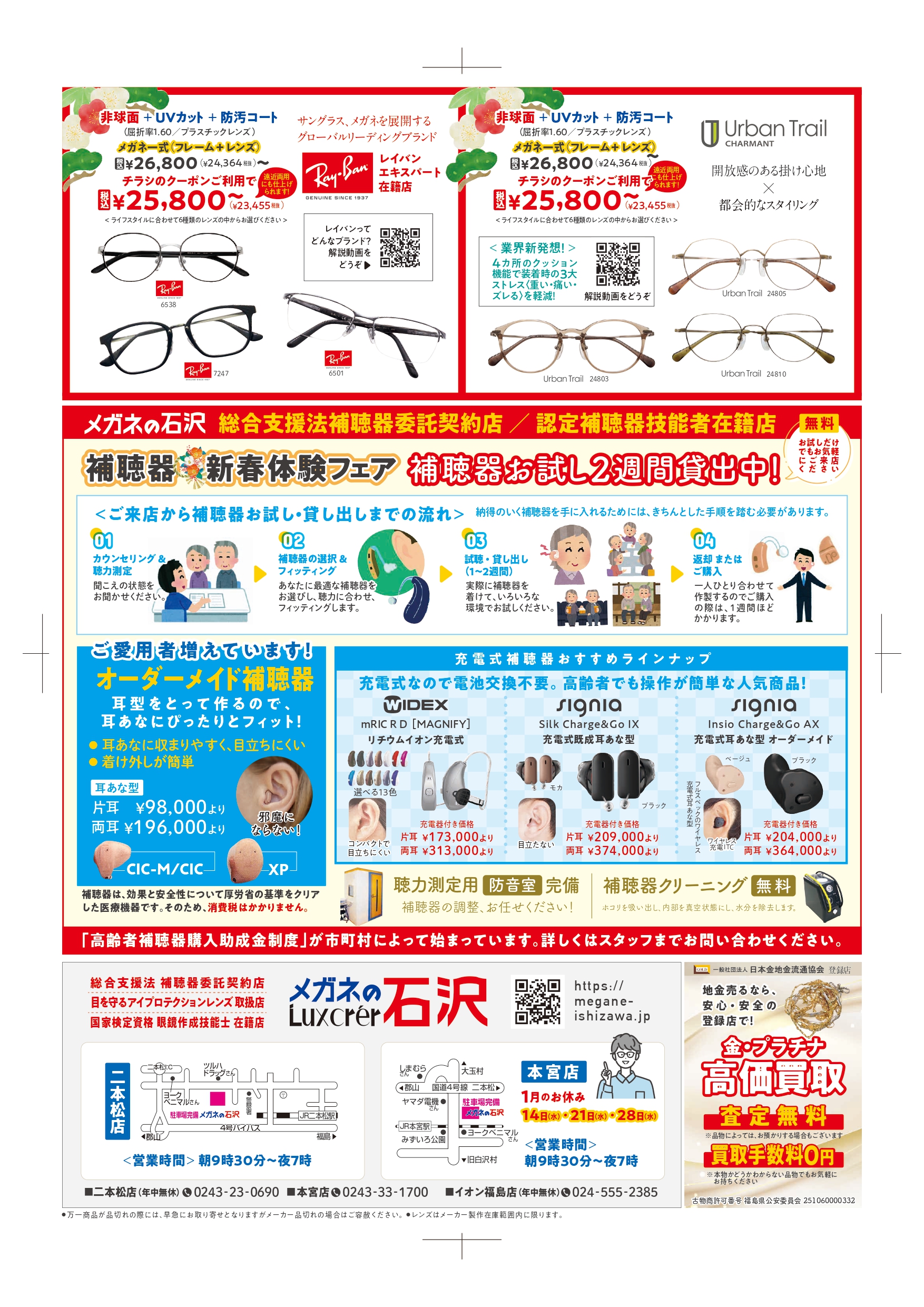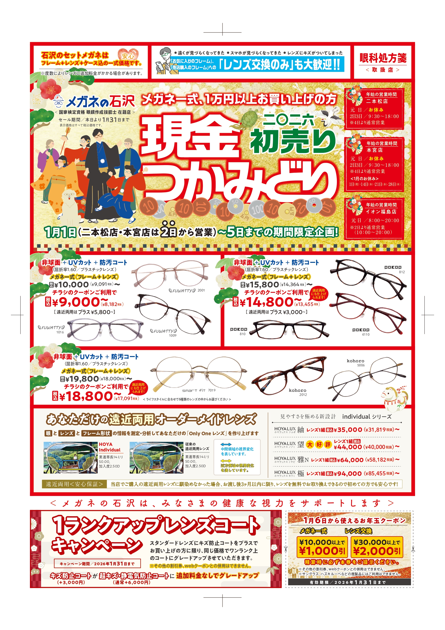 メガネの石沢では 1月1日(二本松店・本宮店は2日から)~5日までの限定企画、