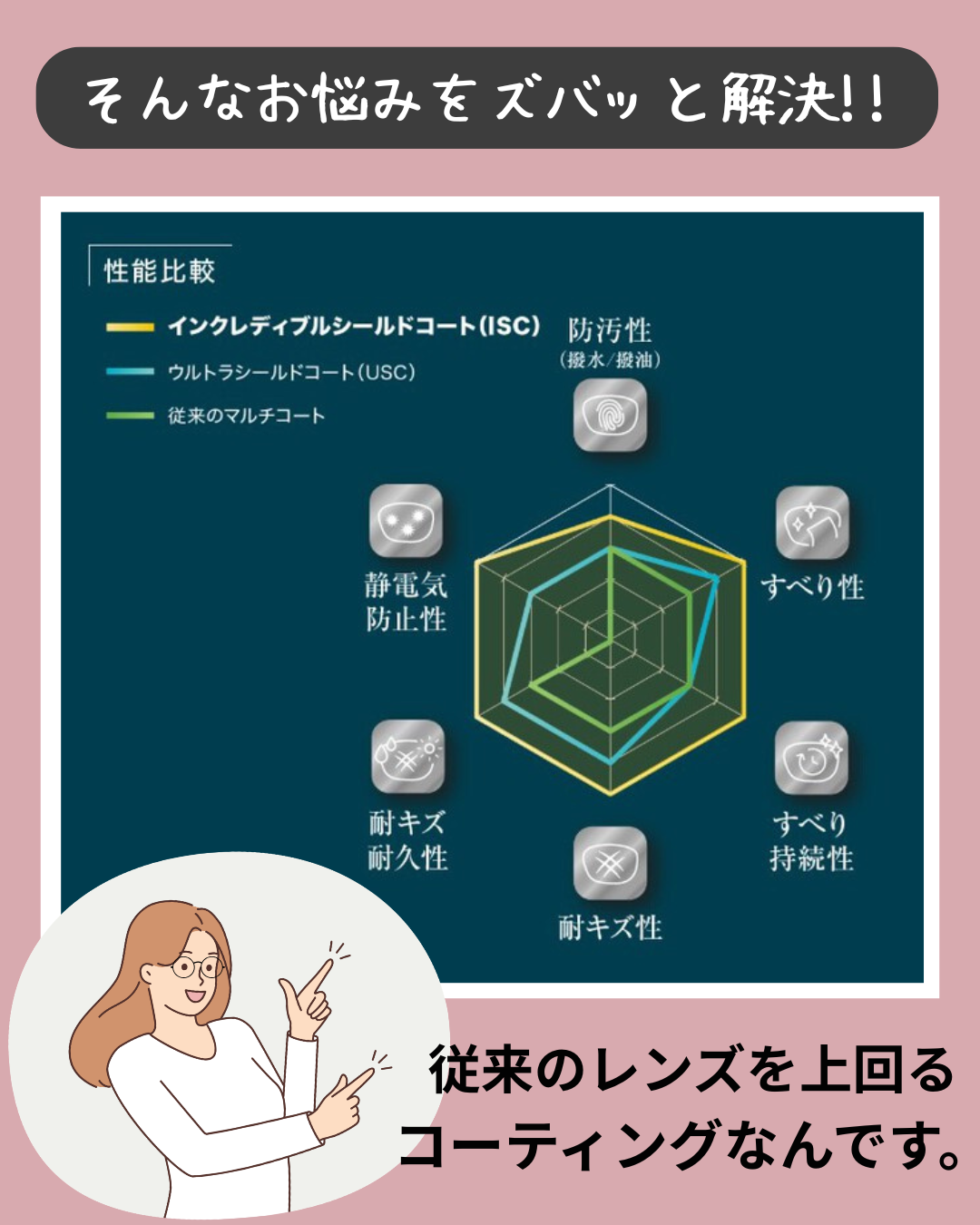 その名の通り インクレディブル「驚くほど」「驚異的な」 シールド「盾」「防御する」 =❝驚異的に防御してくれる❞ メガネレンズコーティングなんです✨