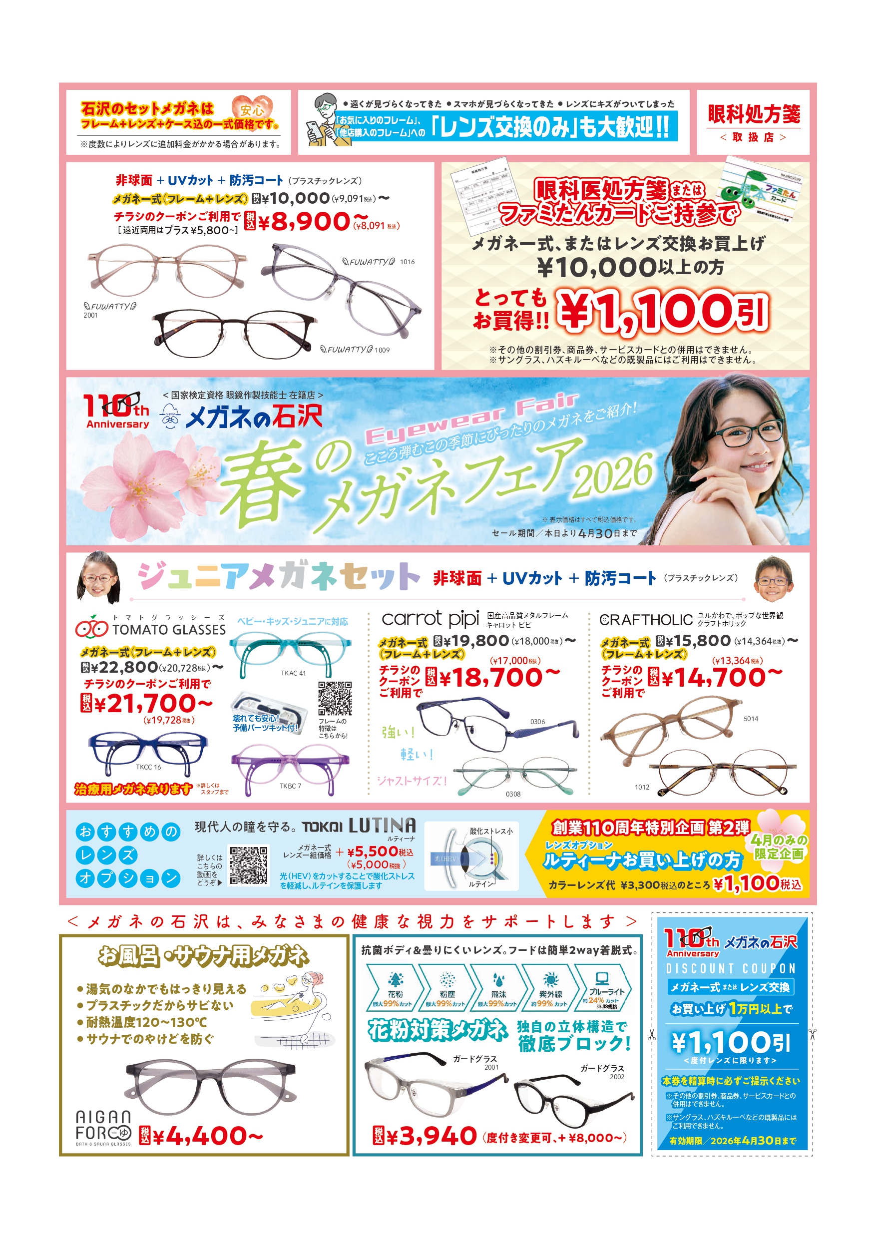 メガネの石沢は『春のメガネフェア2026』を開催致します。